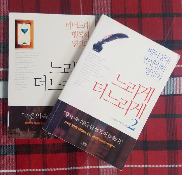 ‘불완전한 인생을 받아들이는 순간, 완벽한 행복이 열린다!’, ‘완벽한 인생을 내려놓는 순간, 완벽한 행복이 다가온다!’ ‘느리게 더느리게’ 1권과 2권의 책 표지에 적힌 글귀가 뒤돌아보지 않고 쉼 없이 달렸던 내 인생에 브레이크를 걸었다. 하버드대학의 행복학 강의와 베이징대학의 인생철학 강의에서 삶에 대한 깊은 통찰과 행복에 다가서는 해법에 관해 따뜻하고 편안한 시선으로 우리에게 대화를 건넨다.
